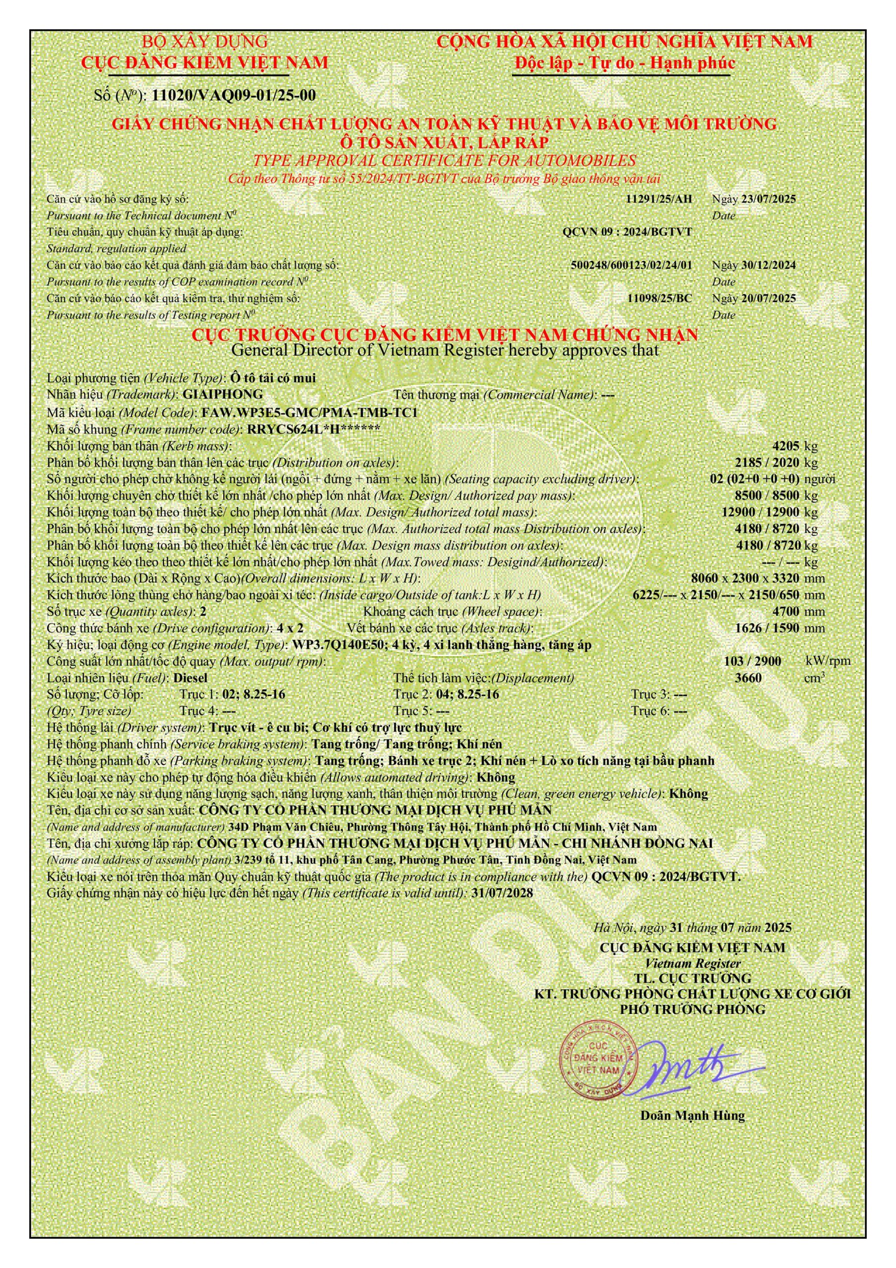 Khung gầm và lốp: Khung gầm chassis được làm từ thép chịu lực cao cấp, bền bỉ. Lốp xe sử dụng loại lốp đồng bộ, kích thước lớn giúp tăng khả năng chịu tải và độ bám đường.